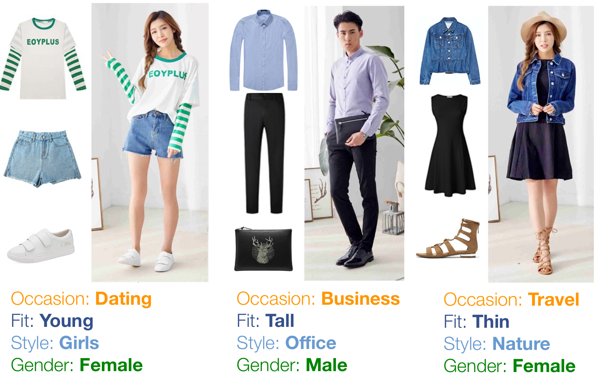 All of 13,914 outfits with garment pictures, model pictures, and explicit desciptions.